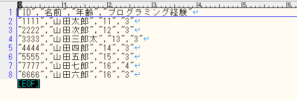 ファイルの中身が「年齢」と「プログラミング経験」でソートされていることが確認できました。